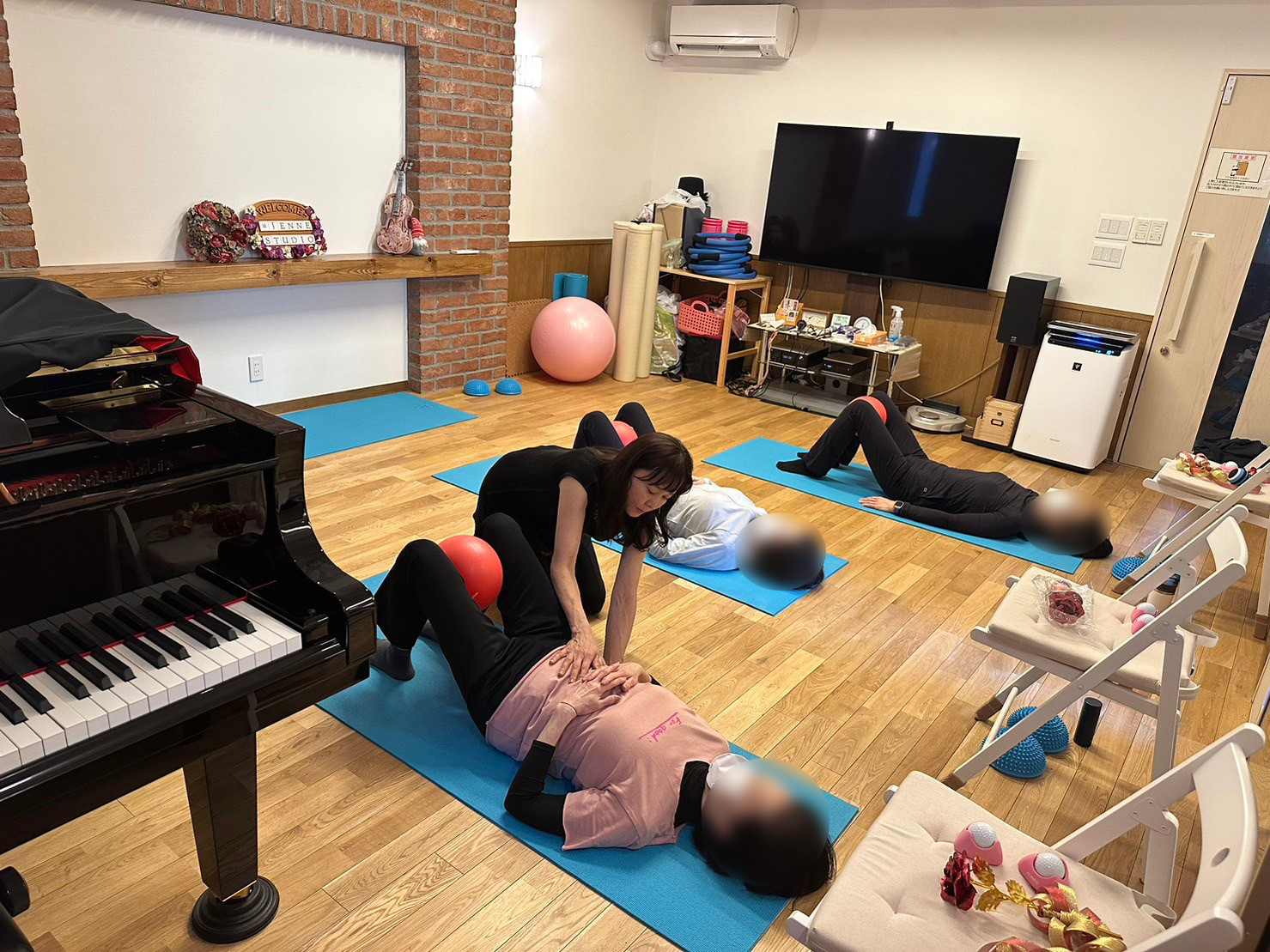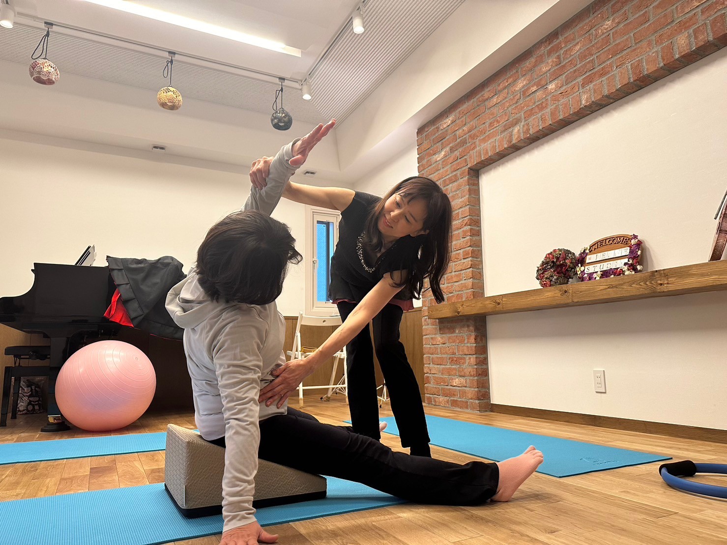 ◦ ピラティスボールは、空気量や使い方によって筋肉への負荷を変えたり、動きをサポートした