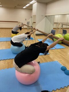 ◦ ピラティスボールで、インナーユニットとバランス感覚を養います。