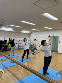 ◦ ピラティスリングを使い、ウエストや二の腕などの部分的な引き締めと体幹の強化を行いま